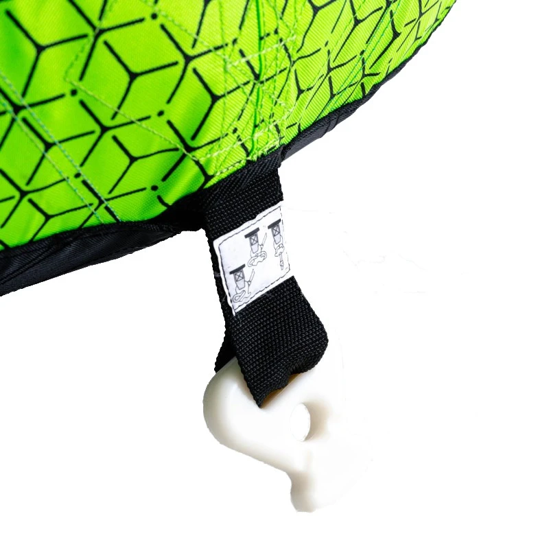 La bouée est munie d’un système d’accroche rapide. Celui-ci vous permettra d’attacher (ou de détacher) rapidement votre corde à votre bouée, SANS OUTIL ! Vous pouvez également y ajouter un largueur Quick release (en option) qui viendra se fixer entre la bouée et la corde, permettant de se détacher rapidement si nécessaire.