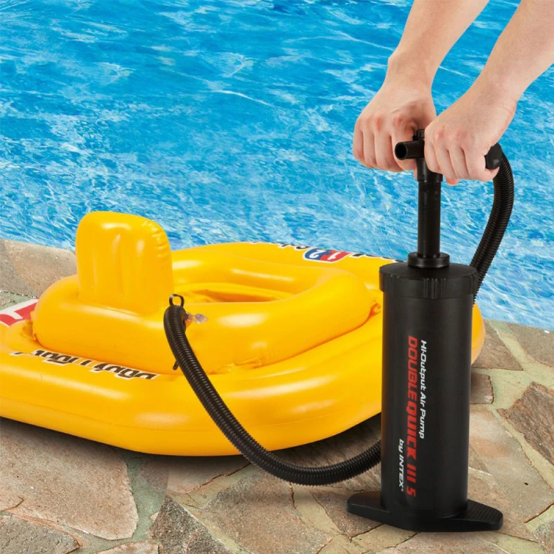 Le gonfleur à main double action de chez Intex fait partie d’un des plus performants de la marque. Il a l’avantage d’être facilement transportable dans une voiture mais aussi d’être pratique et résistant.