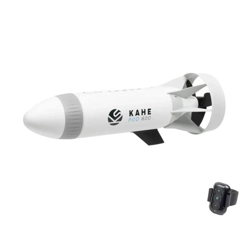 - Le moteur nautique Kahe POD – étanche IP68 : utilisable jusqu’à 5 mètres de profondeur en mode scooter sous-marin.
