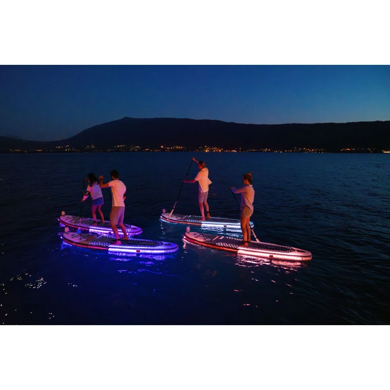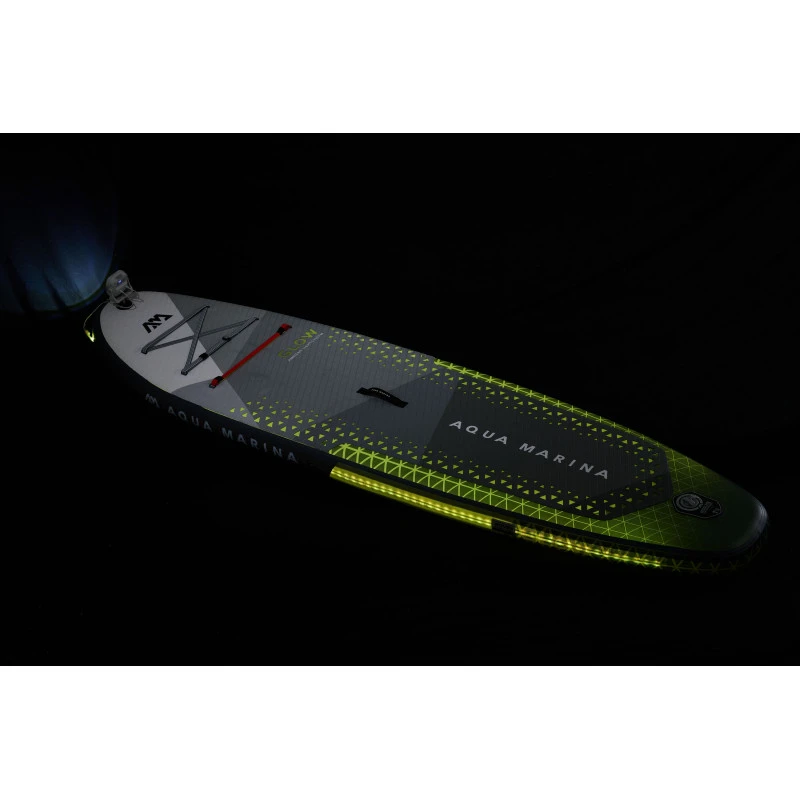 Découvrez le paddle Aqua Marina Glow, le premier SUP lumineux du monde ! Avec son design innovant, le Glow est bien plus qu’un simple paddle. Doté d’un éclairage LED intégré, il vous permet de pagayer de jour comme de nuit, ajoutant une touche de magie à chaque sortie sur l’eau.