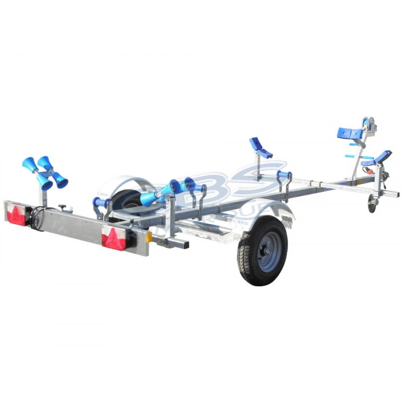 La remorque CBS P0220 dispose d’un châssis monobloc, de 3 bobines, de 2 traverses, de supports pour les boudins et d’une roue jockey. Son cadre est réglable et la potence est munie de treuil à sangle